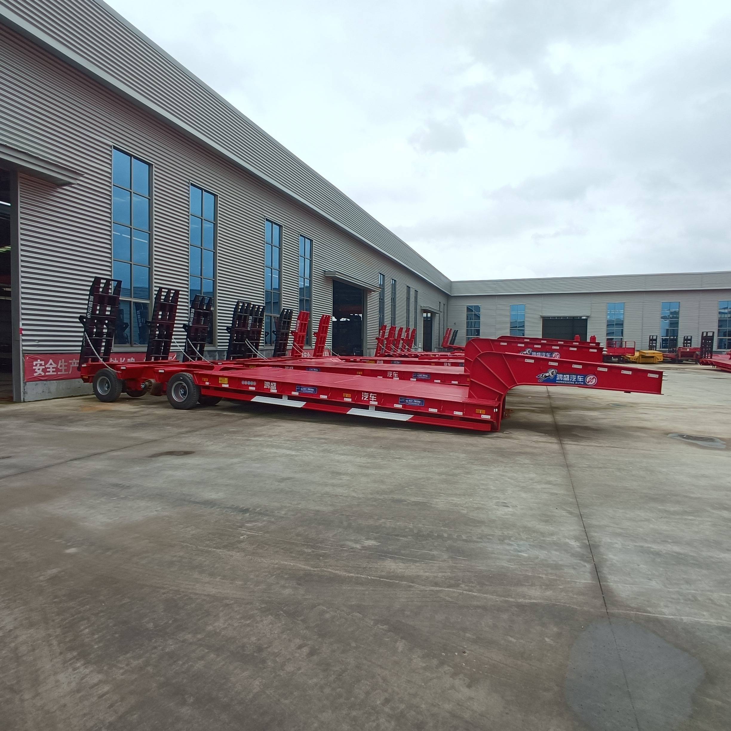 高低板车通常分为低平板半挂车和高低板式半挂车。低平板半挂车的车载部位无栏板,适用于运输机械设备等大件货物;高低板式半挂车则前后车身存在约15厘米的高度差,便于装载特殊高度的货物。车架多采用穿梁式结构,纵梁有平直式或鹅颈式,腹板高度在400至550毫米之间,通过自动埋弧焊焊接工艺增强强度。悬挂系统一般为串联式干板弹簧,能有效缓冲冲击。